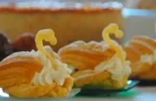 Waffeln mit Kirschen, Reisbrei, Sahne, aber auch andere "Kombi-Essen",